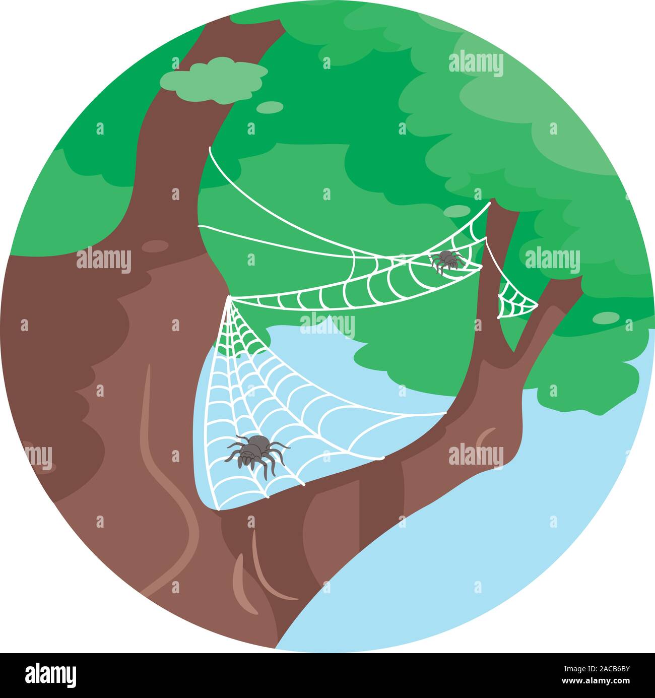 Illustration Of Spiders And Their Webs On A Tree Commensalism Sample Stock Photo Alamy